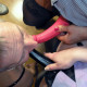 Dominant Dolly teaches her rubber doll how to please others, so she can be whored out. Put in a stress position to start with, she is soon compliantly sucking and licking as directed, even when the special lip gag is put in. 2/2 |